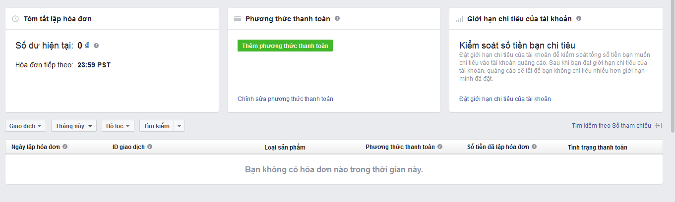 • Các bạn truy cập vào link sau : https://www.facebook.com/ads/manager/billing . Trong mục Phương thức thanh toán sẽ có 4 số cuối thẻ ngân hàng bạn vừa thêm.Bạn chỉnh cho thẻ đó thành phương thức thanh toán chính là thành công